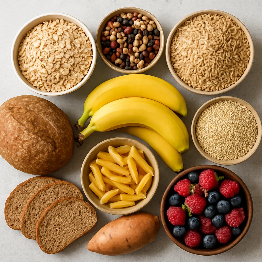 - dla osób aktywnych fizycznie: większy udział skrobiowych węglowodanów przed i po treningu (np. owies, banany, ryż brązowy), aby uzupełnić zapasy glikogenu;