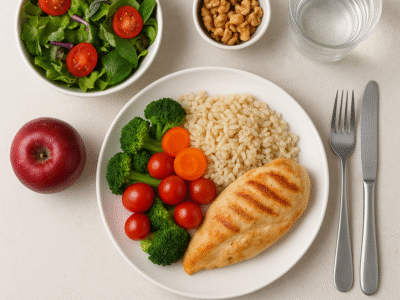- Łącz białko z warzywami i źródłem zdrowych tłuszczów, aby zwiększyć sytość i jakość posiłków.